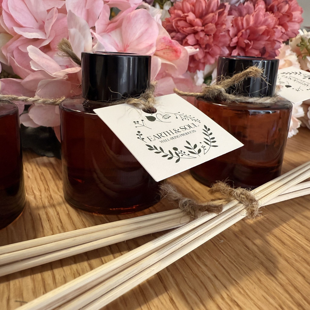 Ambientador de Varetas: Uma forma natural e elegante de perfumar o seu lar, proporcionando uma atmosfera acolhedora e harmoniosa. Produzidos artesanalmente, os nossos ambientadores unem simplicidade e bem-estar, sendo formulados com óleos essenciais puros ou fragrâncias especialmente seleccionadas. A difusão através das varetas garante uma libertação constante e delicada do aroma, preenchendo o espaço com notas equilibradas e duradouras. Além de práticos, são uma solução ecológica para quem procura trazer boas energias e equilíbrio à casa, respeitando a natureza e valorizando os pequenos detalhes.