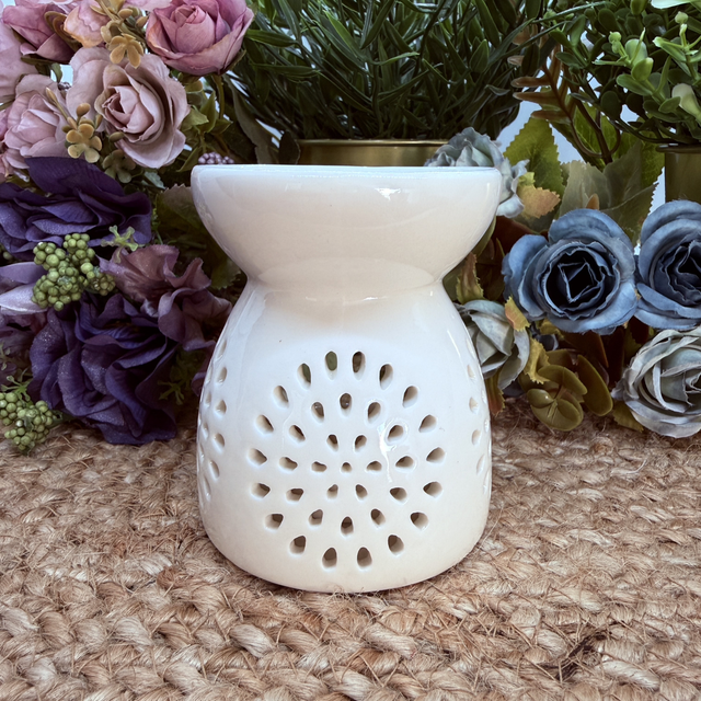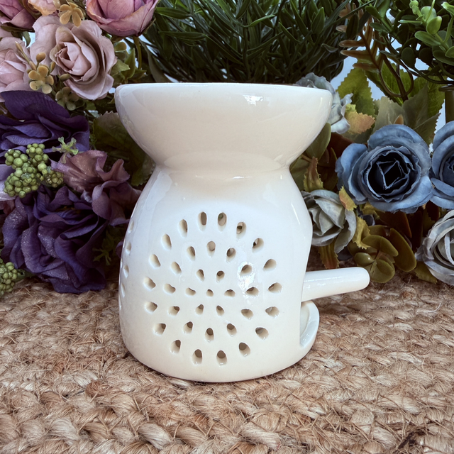 Especificações: Queimador em Porcelana (7 × 9 cm), branco oco, 50 ml. Porcelana resistente ao calor.