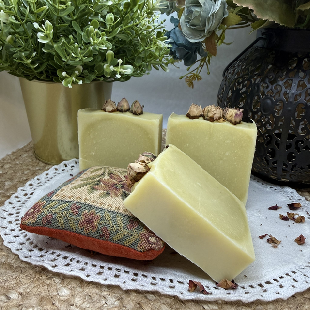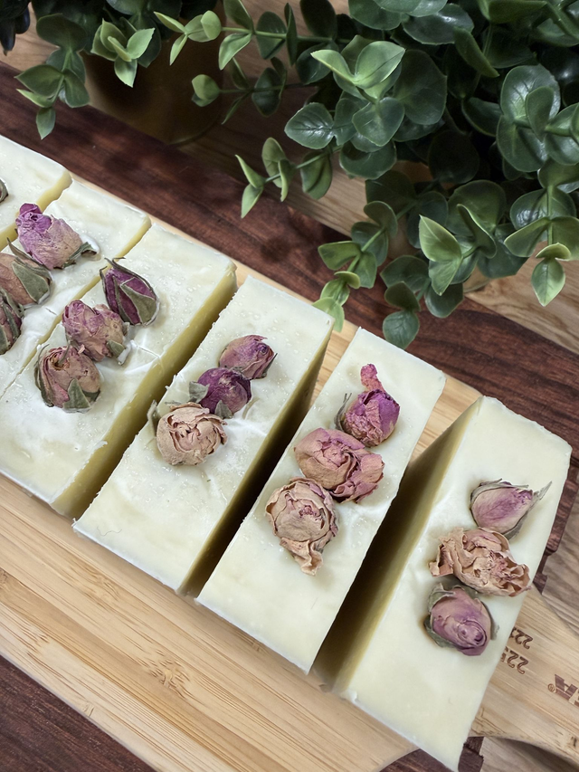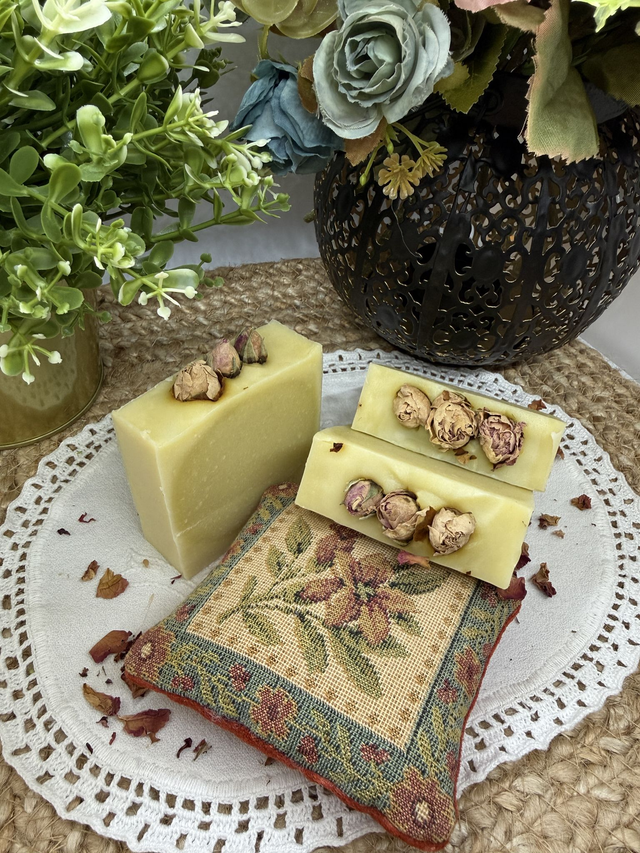 SOBRE: Um sabonete artesanal delicado e nutritivo, formulado com azeite e óleo de côco para uma limpeza suave e equilibrada. A manteiga de manga oferece hidratação profunda e ajuda a manter a pele macia e confortável ao longo do dia. O óleo de rícino contribui para uma espuma cremosa e sedosa, tornando o banho mais envolvente e agradável. Os botões de rosa acrescentam um toque floral subtil e natural, trazendo beleza e uma dimensão sensorial delicada ao ritual diário. Um cuidado simples, pensado para nutrir, suavizar e envolver a pele com leveza e ternura. Sem fragrâncias e óleos essenciais.