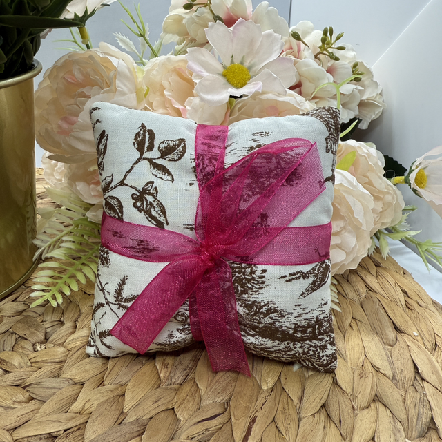 Cuidados: Evitar humidade e sol directo. Apertar suavemente para reactivar o aroma. Refrescar com gotas de óleo essencial após meses. Não lavar. Colocar em locais secos, como gavetas, malas ou debaixo da almofada.